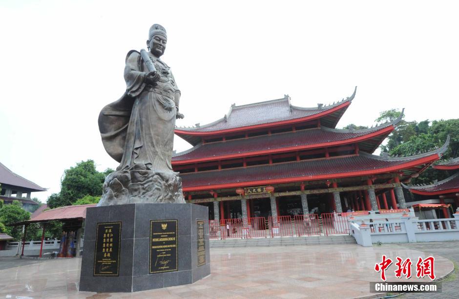 7月25日,中国农历的六月二十九,中国新闻社“新世纪丝绸之路华媒万里行”赴印尼、文莱采访团一行来到了这个印尼中爪哇省首府三宝垄。这座城市的名字来源于郑和。明永乐三年,郑和带领着2万余名将士,乘62艘大船,于农历六月三十日在爪哇岛中部的海港登陆上岸。当地人为纪念这位三宝太监,把他首次登陆爪哇的地方叫做三宝垄。如今,这个古老的港口城市处处弥漫着浓浓的中国文化韵味。临近农历六月三十郑和登陆的日子,三宝垄的不少寺庙都陆续展开了庆祝郑和下西洋609周年活动。中新社发 刘可耕 摄