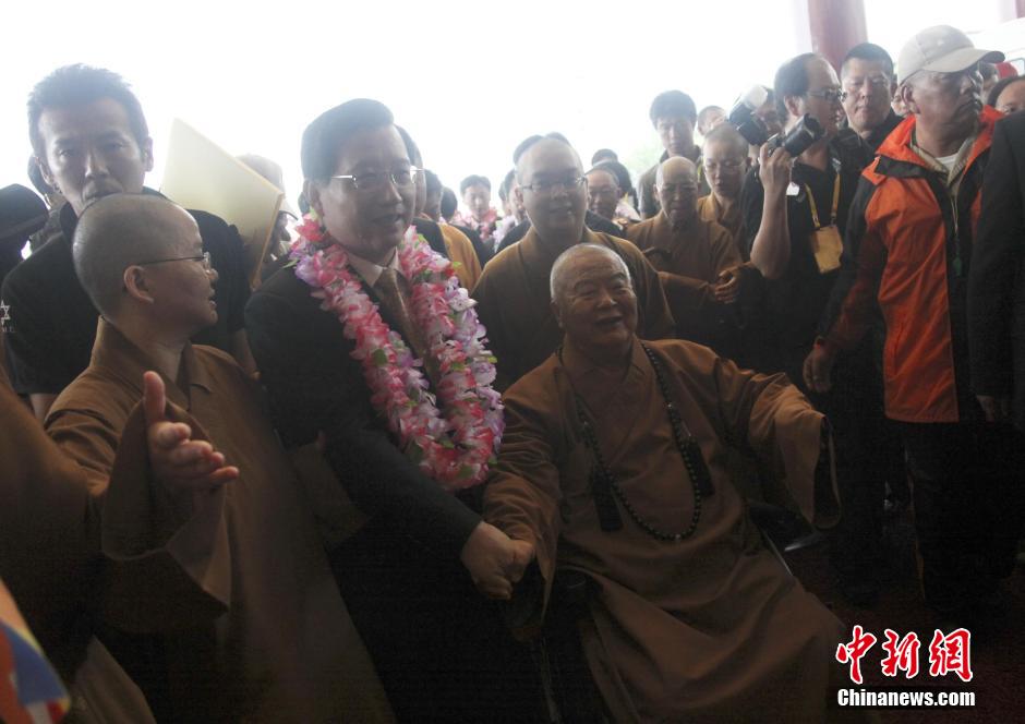 7月25日上午,首度率团访台的中共江西省委书记强卫,专程前往佛光山拜会星云大师,参观佛陀纪念馆,同大师畅叙赣台佛缘。林永传 摄