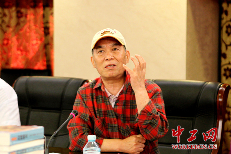 《单田芳自选集》由单田芳先生独家授予中国工人出版社出版,此次出版共十种15册,分别为《封神演义》、《隋唐演义》(上下册)、《大唐惊雷》、《三侠五义》《上下册》、《说岳后传》、《大明演义》(上中下册)、《明末遗恨》《努尔哈赤》《太平天国》《清末风云》(上下册)。图为著名作家、北京语言大学人文学院教授梁晓声在座谈会上发言。 中工网记者 李雪峰 摄