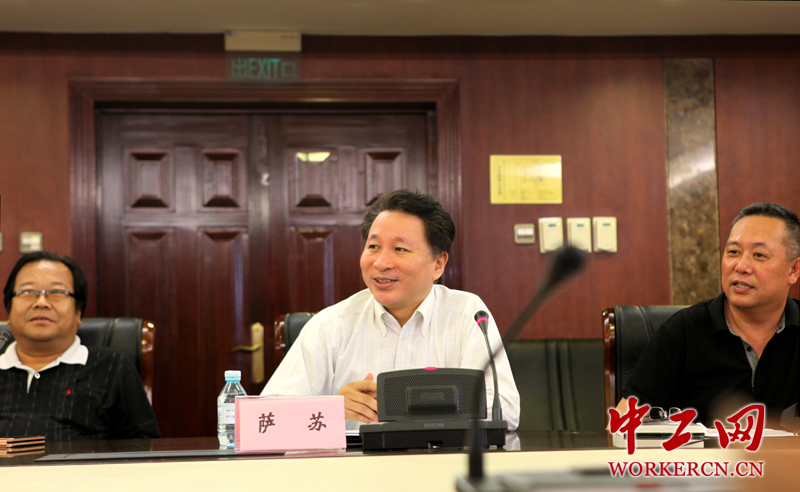 图为著名作家萨苏在座谈会上发言。 中工网记者 李雪峰 摄