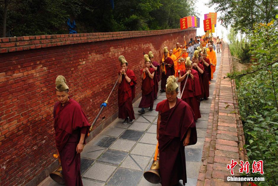 9日下午,著名寺院黛螺顶青黄(汉传佛教、藏传佛教)两庙法乐齐鸣,宝盖庄严,经幡涌动,在晴空白云下,手持“护国息灾”、“风调雨顺”、“正法久住”等标语牌的300多人的送圣队伍自大雄宝殿、山门经马道浩浩荡荡徒步走下台怀中心区,首尾相望,蜿蜒如龙,绵延数里。队伍集中在黛螺顶下清水河西岸后,护国息灾水陆法会最后一个仪式——送圣法会在诵经声中圆满结束。高峰毅 摄