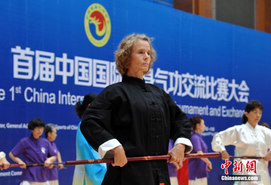 8月12日,中国传统戏曲节目亮相首届中国国际健身气功交流比赛大会。当日,首届中国国际健身气功交流比赛在安徽池州开幕,来自中国、美国、加拿大、英国、法国等27个国家、43支代表队,299名运动员参加健身气功、五禽戏、六字诀、八段锦四种功法的比赛。中新社发 韩苏原 摄