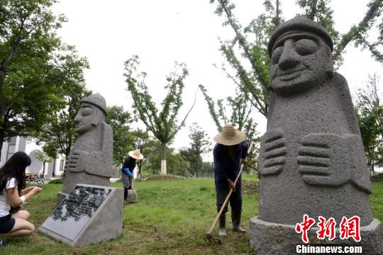 8月15日,为庆祝韩国济州市与昆山市缔结友好城市12周年,一对作为旅游宣传大使的济州象征物“石头爷爷”正式落户昆山夏驾河公园内。“石头爷爷”是用火山石雕成的石像,是济州的象征之一,被认为具有辟邪、避祸的功能。落户昆山的一对石头爷爷,一个右手在左手之上为文官,另一个右手在左手之下为武官,高2.5米,眼睛凸大,鼻梁高长挺直,耳朵长方,嘴唇紧闭,嘴角带笑,憨态可掬。除了宣传济州,吸引游客外,也将促进两城市间的交流和影响力,祈愿两市友谊长存、繁荣发展。据悉,济州市此前已在中国桂林市、莱州市、美国圣塔罗沙市、日本三田市、东京荒川区、德国罗蕾莱市、日本和歌山市等7个友好城市设置了“石头爷爷”。