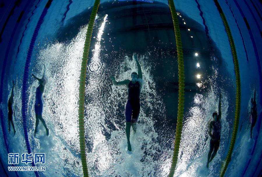 8月18日,中国选手邱钰涵在比赛中。当日,在2014南京青奥会游泳项目女子100米自由泳半决赛中,邱钰涵以54秒78的成绩晋级决赛。 新华社记者丁旭摄
