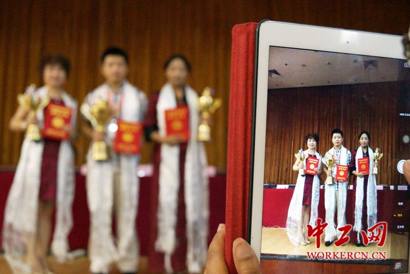图为表彰大会会后获奖选手合影留念。中工网记者 段瑜摄