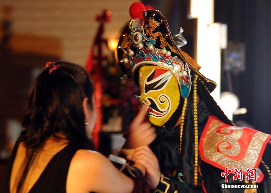 当地时间8月31日,“锦绣中华—藏区新貌”文化周在美国洛杉矶揭幕,文化周以图片展、歌舞表演和藏文化名家论坛等活动向人们呈现出四川藏区的真实面貌。变脸演员让参与者触摸感受。中新社发 毛建军 摄