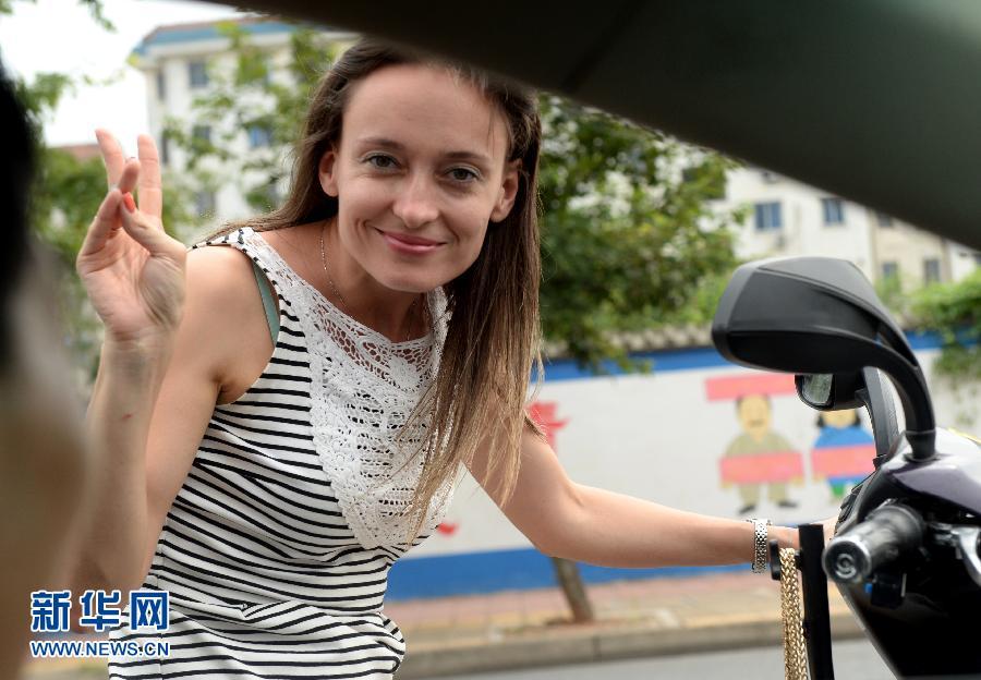 9月1日,安娜骑着电动车与小区的一位车主打招呼。安娜是一位典型的乌克兰美女,2001年到位于浙江金华市的浙江师范大学求学,毕业后嫁给一名中国男子,定居在金华。2013年11月,安娜自告奋勇,加上很多业主的支持,当上了金华市怡景园小区的业委会主任。近一年来,安娜管理着浙江省金华市这个只有4幢房子的老小区,除了她经营的西餐厅,她把所有的时间都花在做好“小区总理”的职责上,从鸡毛蒜皮的小事到小区的环境规划,她都亲力亲为。她心直口快、爱管闲事,在小区居民的眼里,她既是一名时尚的乌克兰美女,又是一名典型的“中国式大妈”。新华社记者 王定昶 摄 图片来源:新华网