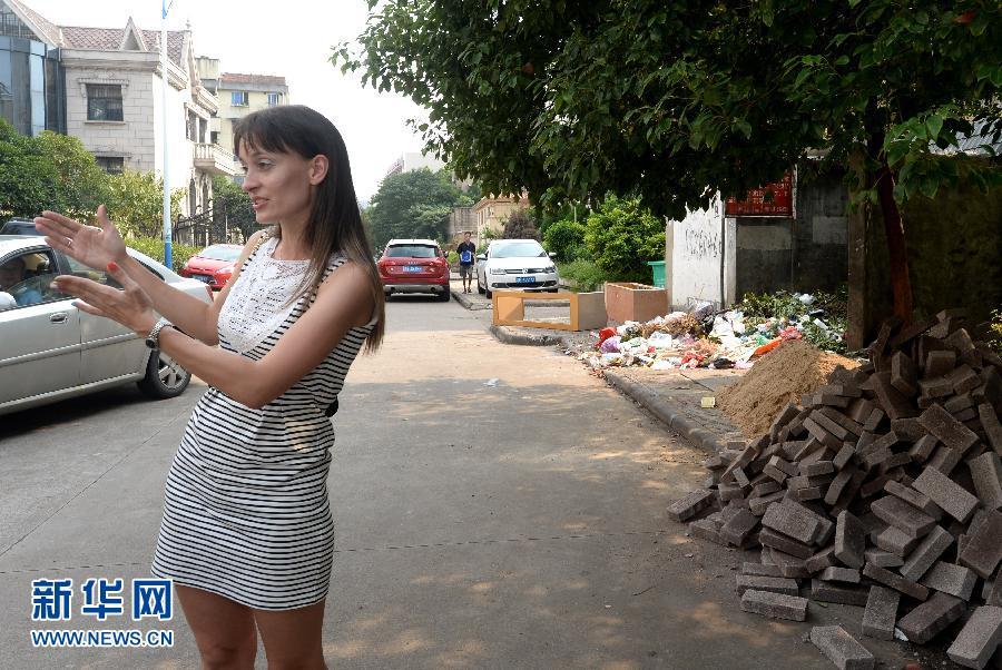 安娜对她背后散发臭气的垃圾堆很不满,她说她一定要帮助小区居民解决“气味”问题,这是她在选举时许下的承诺(9月1日摄)。安娜是一位典型的乌克兰美女,2001年到位于浙江金华市的浙江师范大学求学,毕业后嫁给一名中国男子,定居在金华。2013年11月,安娜自告奋勇,加上很多业主的支持,当上了金华市怡景园小区的业委会主任。近一年来,安娜管理着浙江省金华市这个只有4幢房子的老小区,除了她经营的西餐厅,她把所有的时间都花在做好“小区总理”的职责上,从鸡毛蒜皮的小事到小区的环境规划,她都亲力亲为。她心直口快、爱管闲事,在小区居民的眼里,她既是一名时尚的乌克兰美女,又是一名典型的“中国式大妈”。新华社记者 王定昶 摄 图片来源:新华网