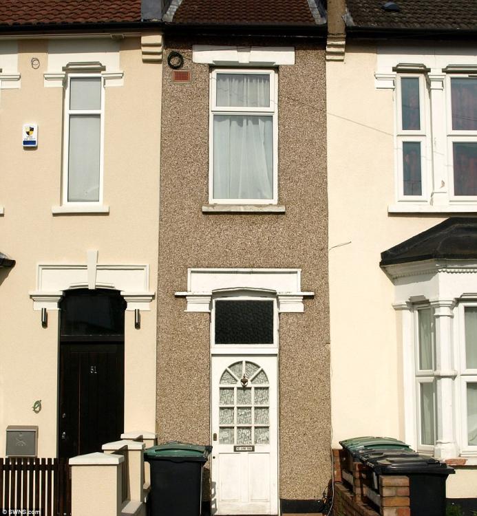 据《每日邮报》2014年9月3日报道,英国伦敦,英国最窄的房子只有83英寸(约2.1米),将于10月1日拍卖。(网页截图)