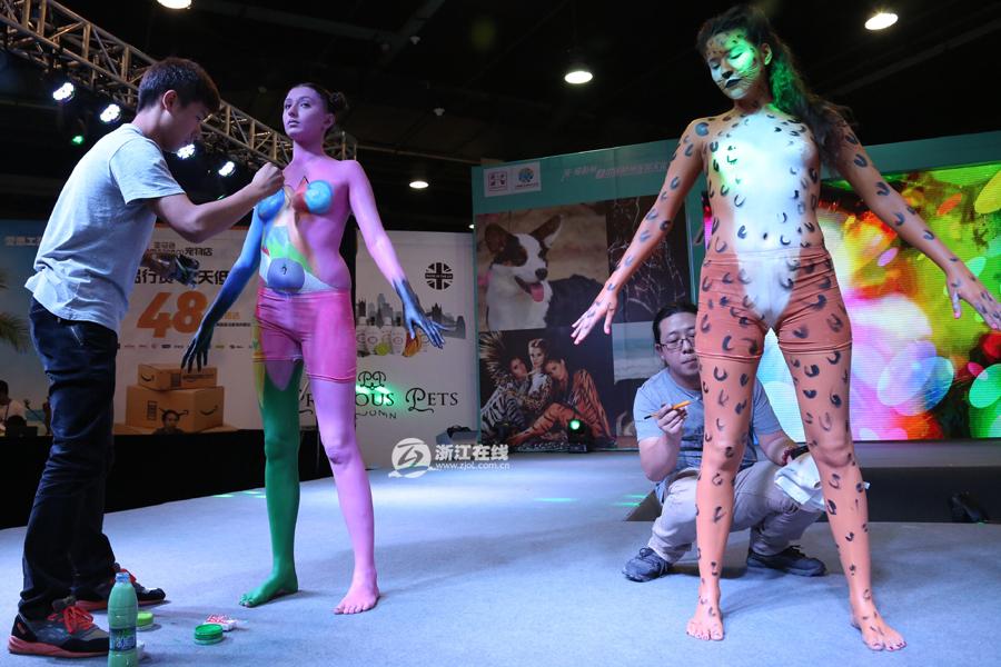 近日,杭州一场宠物文化节,吸引了上千市民前来参观。宠物节上,性感火辣的人体彩绘与萌宠相结合上演一场模特宠物秀,吸引了无数眼球,为市民带来high劲十足的视觉盛宴。