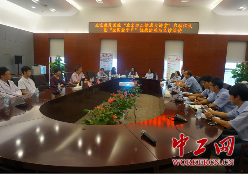 1、9月20日是第26个全国爱牙日,北京康复医院口腔科主任、副主任医师王立新来到北京建筑材料科学研究总院,为工会会员举办了题为“中青年职工牙齿疾病的预防与治疗”的专题讲座,同时也标志着由北京市总工会主办、首都医科大学附属北京康复医院承办的“首都职工健康大讲堂”正式启动。(中工网记者杨灵 摄)