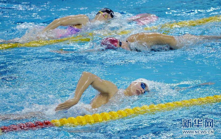 9月22日,中国选手孙杨(下)在训练中。当日,2014仁川亚运会游泳比赛继续进行。 新华社记者朱峥摄