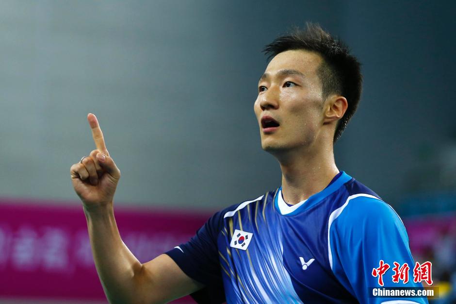 9月23日,仁川亚运会羽毛球男子团体决赛在桂阳体育馆打响,中国迎来东道主韩国的挑战。最终经过五盘较量,韩国以总比分3:2战胜中国摘金。图为韩国第三单打选手李炫一在比赛中。中新社记者 富田 摄