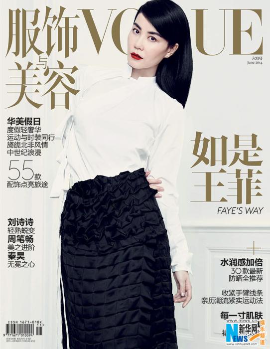 《Vogue服饰与美容》六月刊邀请歌坛天后王菲出演封面及内页,这也是王菲首次登上《Vogue服饰与美容》杂志封面。在这次万众瞩目的合作中,王菲以天然本色完美诠释了Vogue女性精神。一直以来,作为华语歌坛不可取代的名字,王菲以沉静自然的气质和犹如天籁的好嗓音,赢得了千万歌迷的拥戴;在理智和情感的交缠中,她用出自直觉的步调,走过了一条不算平坦却异常精彩的路,把纷扰世事演绎成了传奇。图片来源:新华网