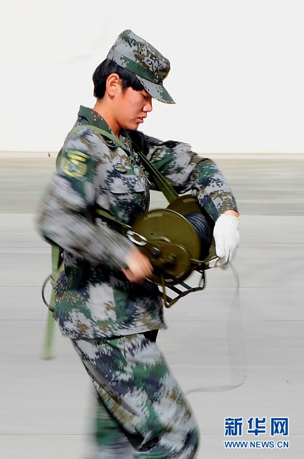 9月24日,一名女兵在参加通信兵野战电话开设训练。被总后授予“青藏高原模范通信连”荣誉称号的青藏兵站部某通信团一连,是一个以女兵为主体的混编连队。在艰苦的环境里,这群平均年龄只有19岁的女兵,同男战友们一样,尽军人卫国戍边之责,为保障通信线路的畅通,奉献着美好的青春年华,被誉为“高原军营盛开的格桑花”。新华社记者王颂摄