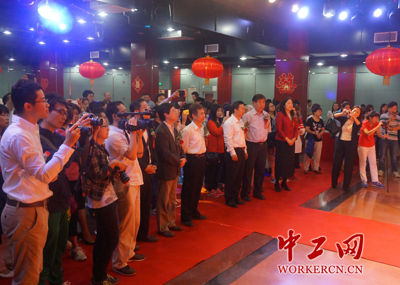 东城区领导主婚,工会主席证婚,还有新人亲友200多人一起见证他们的幸福时刻。(中工网记者杨灵 摄)
