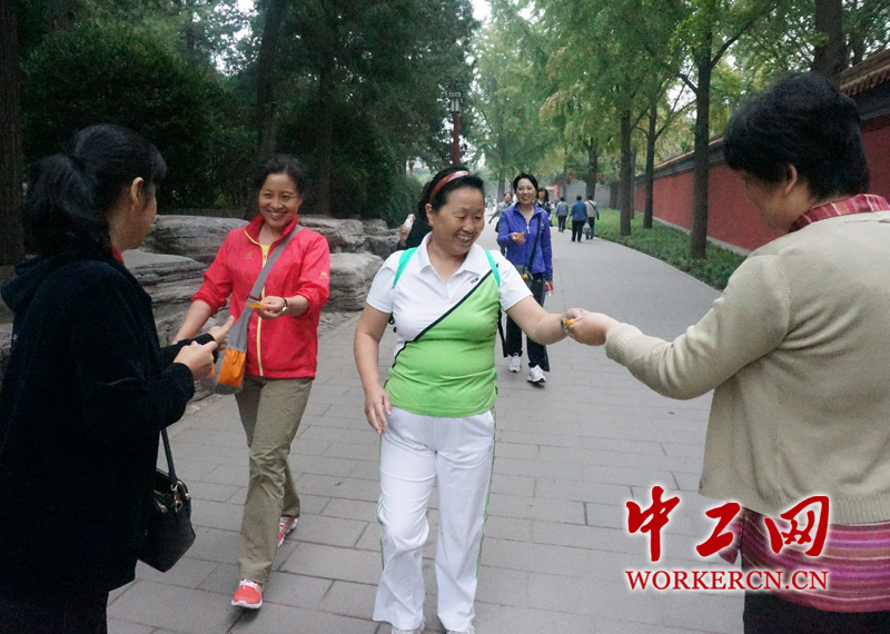 9月26日,东城区总工会在景山公园举办了“快乐工作、健康生活”,东城区第四届女职工干部趣味运动会暨金秋登山比赛。来自辖区40个单位的近100名女职工委员会委员、基层女职工委员会主任、女工干部们参加了此次活动。(中工网记者杨灵 摄)