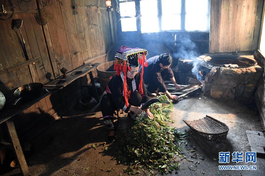 9月27日,在广西龙胜各族自治县龙脊镇大柳村,盘瑶大嫂赵春林(左)在切草药准备熬煮。庞桶浴是广西龙胜各族自治县盘瑶同胞一种独具特色的洗浴方式,这里的盘瑶将它作为祖先独创的保健养生秘方世代相传。据《龙胜县志》记载:“盘瑶有‘庞桶浴’之习,桶高2至3.5尺,直径2.5至3尺。洗时,用九牛藤、节骨草、血藤、钩藤等治风湿草药煮浓,兑冲成温汤,注入桶中供人沐浴,可去瘴气、风湿痛等”。因此,当地有这样的民谣,“天天洗个热水澡,不需郎中抓药草;常常蒸洗庞桶澡,消灾除病百年好”。新华社记者 陆波岸 摄