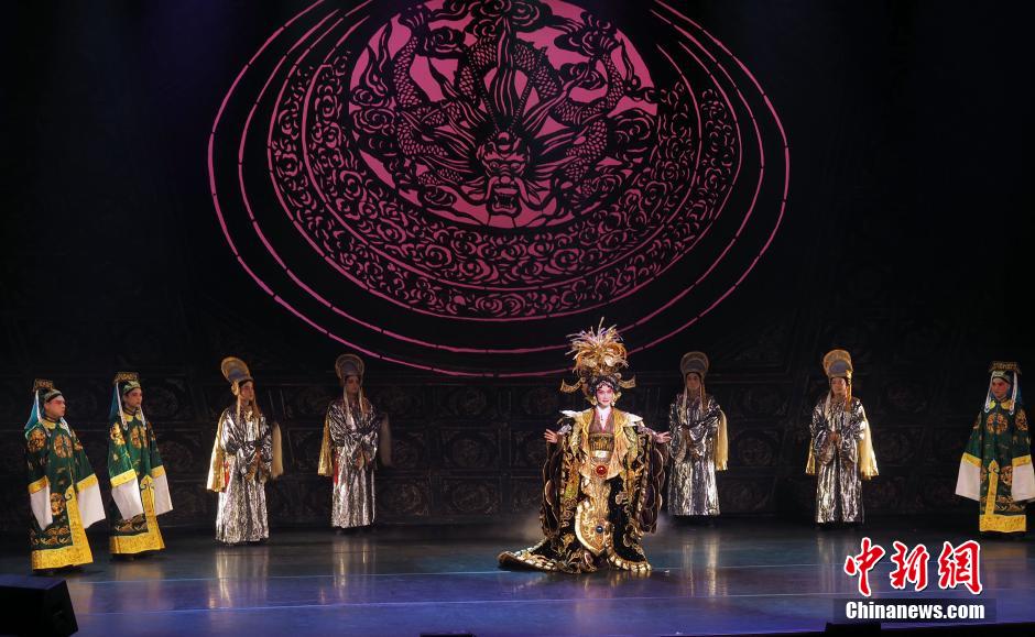 当地时间9月27日晚,由著名旅日京剧表演艺术家吴汝俊担纲,齐淑芳京剧团与纽约梨园社助演的新京剧《则天大帝》在美国纽约上演。为当地侨胞与京剧爱好者献上一场精彩的金秋国粹盛宴。中新社发 毛建军 摄