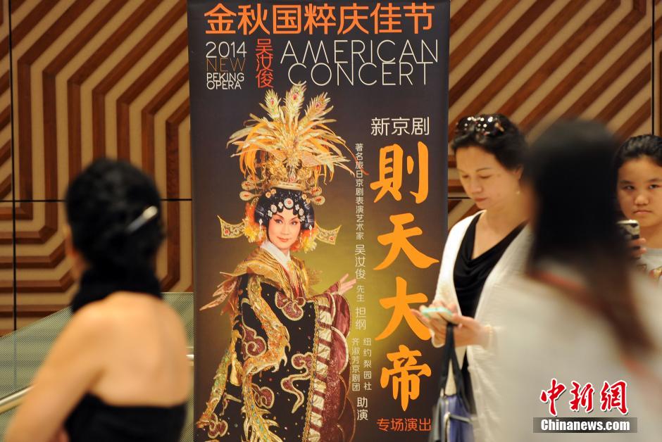 当地时间9月27日晚,由著名旅日京剧表演艺术家吴汝俊担纲,齐淑芳京剧团与纽约梨园社助演的新京剧《则天大帝》在美国纽约上演。为当地侨胞与京剧爱好者献上一场精彩的金秋国粹盛宴。中新社发 毛建军 摄