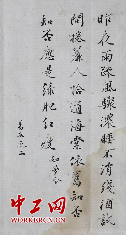 富察先生的书体不拘一格,可因内容自如变换,例如格言类,采用凝重、端庄之体,怡情悦性者可用婉丽、潇洒之体,以求内容与形式之和谐。富察先生走了,他没给自己的儿女留下什么遗产。他的儿子傅振起向记者回忆说:‘父亲生前,我只求他给写过两幅字,一幅送了朋友,一幅现在挂于卧室中,成了永久的纪念……’富察先生走了,他给社会却留下了宝贵的精神财富,并培养出数万名书画人才。北京人民大会堂、天安门城楼、故宫博物院、毛主席纪念堂等处,都收藏着富察先生的书法作品。黄河碑林中,他那“西出昆仑东入海,神驰嵩狱志摩天”的行楷联句,更是以其神韵超逸、端庄凝练、秀美典雅的磅礴气势,永驻人间,成为后人研究学习的楷范。图为富察庄净作品,易安(李清照)词(宽10.5厘米X高16.2厘米)。