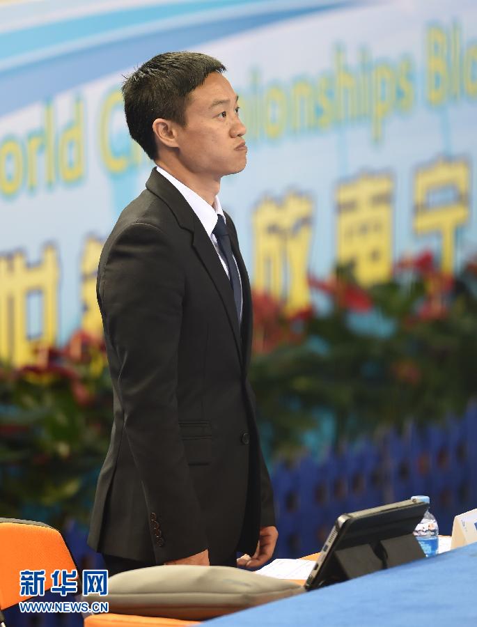 10月9日,奥运冠军杨威作为本次比赛裁判在执裁。当日,第45届世界体操锦标赛男子全能决赛在广西体育中心体育馆举行。   新华社记者杨宗友摄