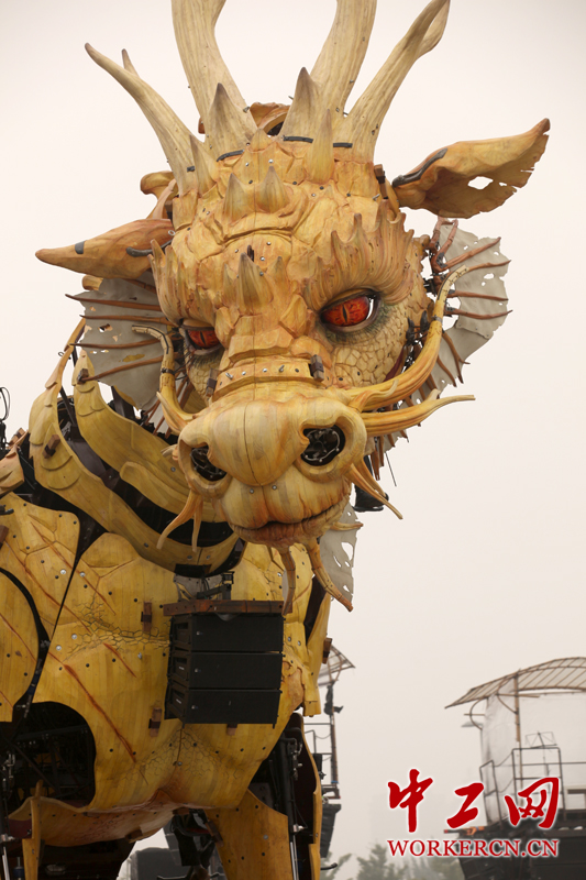 法国机械“龙马”将于10月17日至19日在北京奥林匹克公园中心区展开。届时,身高12米、重达47吨的龙头马身神兽将与一只高5.7米、体宽6米、重37吨的机械蜘蛛“大战”于鸟巢前。这一活动是在中法建交50周年系列活动框架下的重要活动之一。目前,来自法国的工作人员正在做最后的准备工作。 中工网记者 李雪峰 摄