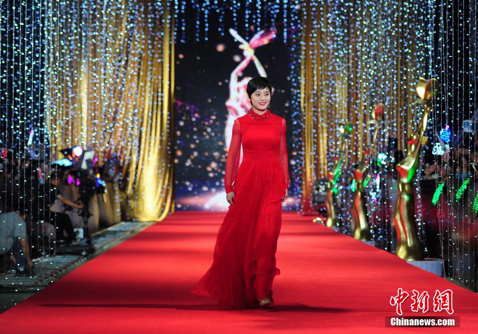 10月12日晚,第十届中国金鹰电视艺术节闭幕式暨第27届中国电视金鹰奖颁奖典礼在长沙举行。在典礼前的红毯走秀中,孙俪以一身大红裙装亮相,娇艳中不失霸气,抢尽全场风头。中新社发 杨华峰 摄
