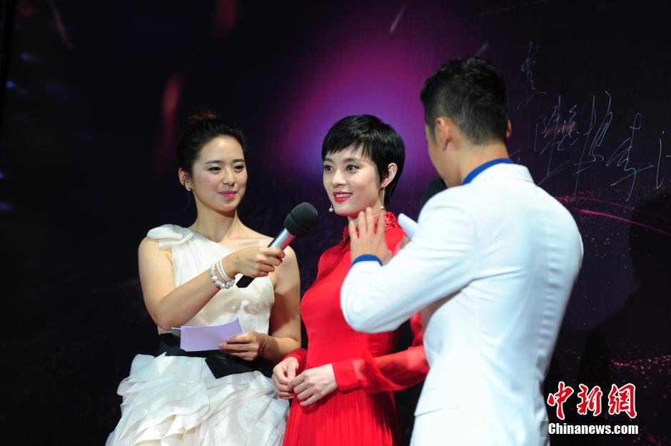 10月12日晚,第十届中国金鹰电视艺术节闭幕式暨第27届中国电视金鹰奖颁奖典礼在长沙举行。在典礼前的红毯走秀中,孙俪以一身大红裙装亮相,娇艳中不失霸气,抢尽全场风头。中新社发 杨华峰 摄
