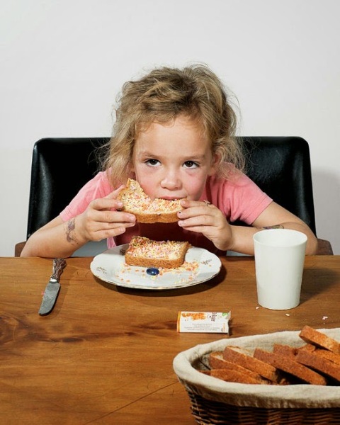阿姆斯特丹,5岁小女孩薇薇正在吃早餐。她的早餐通常是一杯牛奶外加抹有黄油和洒上甜碎屑的面包。
