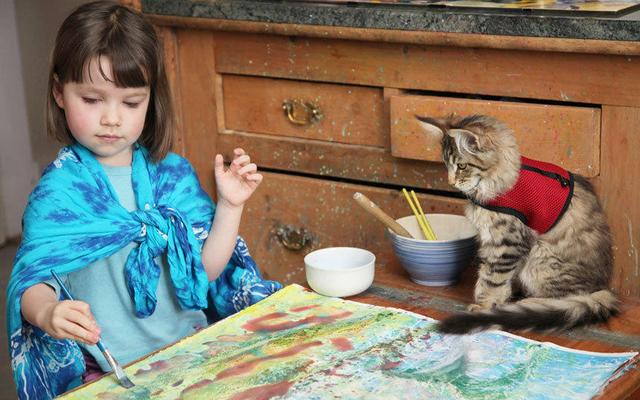 据每日电讯报道,近日,一位5岁小画家作的画因色彩绚丽、情感丰富引起了不少人的关注。这位来自英国莱斯特郡的自闭症小女孩艾瑞斯-格蕾斯-哈姆肖的画曾售出1500英镑(约合14600元人民币)的高价。与很多艺术大师一样,哈姆肖很少与外界交流, 在两岁时就被诊断出患有自闭症。然而,这种沉默的状况却因为萌猫图勒的出现被打破了。