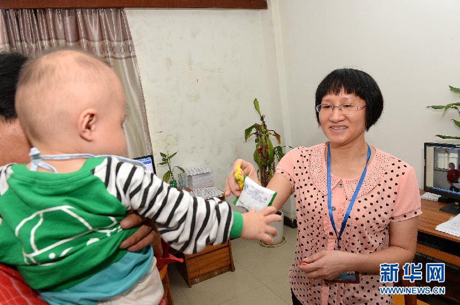 10月21日,广西贺州市妇幼保健院保健部副主任刘丽芬(右一)在逗孩子玩。广西贺州市妇幼保健院保健部副主任刘丽芬工作20年来,早出晚归,全身心地投入到妇幼保健特别是预防艾滋病母婴传播项目工作中。 2003年,贺州市八步区作为全国试点县之一率先启动预防艾滋病母婴传播项目,她经常深入村寨或艾滋病高危人群中宣传艾滋病防治知识,为艾滋病感染者或病人精心诊治和做心理疏导服务工作。11年来,刘丽芬接触预防保健的艾滋病感染者孕妇姐妹达200多人,她们生下的小孩无一例为阳性,成功率为100%。据贺州市卫计委副主任梁章清介绍:近三年来,贺州市孕产妇接受HIV咨询检测率达99%。阳性孕产妇随访、用药率100%,阳性产妇所生婴儿随访、用药率100%,满18个月婴儿186人,HIV检测阳性为0。新华社记者 何俊昌 摄