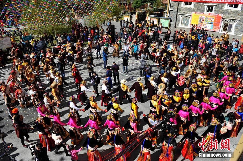 10月31日,四川阿坝理县在该县古尔沟镇丘地村举行嘉绒藏族若木纽节。“若木纽节”是理县米亚罗地区嘉绒藏族“庆丰收”的传统盛会,一年两次,一次是农历五月的“仁古若木纽”,又称看花节,一次是农历九月或十月的“党日若木纽”,其规模可大可小,可各寨单独举行,或联合举行。会期三至五日,届时寨民们都要烧烟烟敬山神,同时还要举行赛马、跳锅庄、赏花等活动。安源 摄