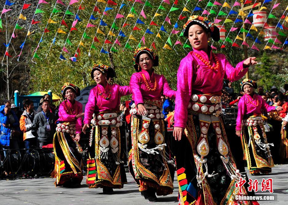 10月31日,四川阿坝理县在该县古尔沟镇丘地村举行嘉绒藏族若木纽节。“若木纽节”是理县米亚罗地区嘉绒藏族“庆丰收”的传统盛会,一年两次,一次是农历五月的“仁古若木纽”,又称看花节,一次是农历九月或十月的“党日若木纽”,其规模可大可小,可各寨单独举行,或联合举行。会期三至五日,届时寨民们都要烧烟烟敬山神,同时还要举行赛马、跳锅庄、赏花等活动。安源 摄