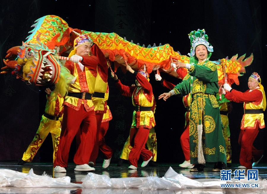 11月4日,四川亚克文广局妇联老年体育协会表演舞蹈《梦回故里》。当日,“炫舞辉煌——2014全国优秀群众舞蹈展演”在北京民族文化宫大剧院举行。来自全国各地的17个基层演出单位,共400余名演员参加了此次活动。新华社记者唐召明摄