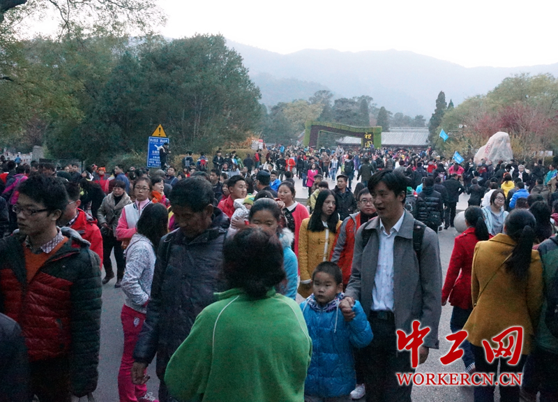 11月正值香山红叶观赏期,又逢APEC会议调休放假,周末两天车畅天蓝,10余万乐享假期的市民登上香山,欣赏漫山红遍的美景。(中工网记者 杨灵摄)