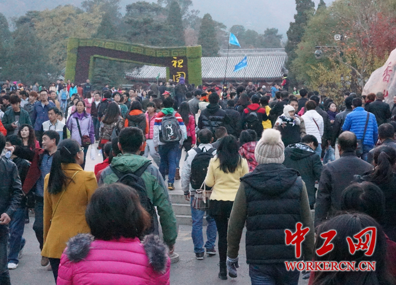恰逢周末,特别是持散票的北京本地游客明显增多,周六全天有5万余人来到香山。(中工网记者 杨灵摄)