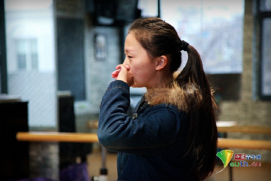 毕竟只有18岁,当记者问小蓉想不想家的时候,小蓉却告诉记者,她高中就离开家在外地读书了,一年也只回家两次。但经常给妈妈打电话,有时闲下来就想给妈妈打电话。但是电话通了又不知道说什么,就一件件和妈妈讲今天吃什么了,看见什么了。(中国青年网记者孟畅摄)