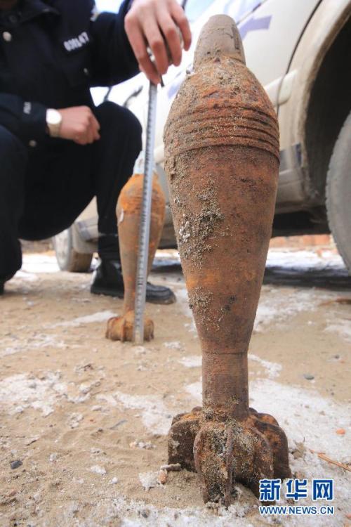 11月12日,黑龙江省齐齐哈尔市泰来县公安局汤池派出所的民警在测量侵华日军遗留炮弹。近日,黑龙江省泰来县汤池镇汤池村村民在挖土时发现两枚炮弹。炮弹长约33厘米,直径约8厘米,重约2公斤,经专家鉴定为侵华日军遗留炮弹,炮弹虽已经锈蚀,但仍具杀伤力。目前,炮弹被存放在安全区域,待集中销毁。泰来县是抗日爱国将领马占山指挥打响“江桥抗战”的发生地,近两年,泰来县当地公安机关累计发现各类侵华日军遗留的炮弹16枚、子弹1000余发。郝劲飞 摄 图片来源:新华网