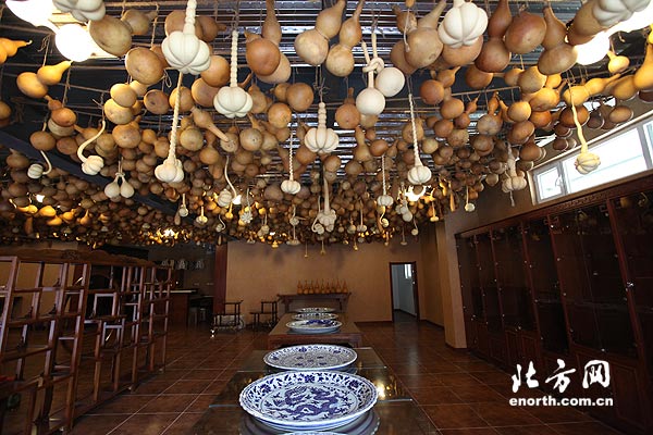 走进位于河北区的“葫芦庐”,仿佛置身于奇妙的“葫芦世界”中,在600多平方米的“葫芦庐”中,展示着众多千奇百怪的葫芦,有的葫芦上雕刻着精美绝伦的花纹、有的葫芦只有手掌大小,有的葫芦呈心形,有的刻着镂空的花纹……令人称奇不已。赵伟告诉记者:“庐就是房子的意思,之所以叫葫芦庐,就是希望喜爱葫芦的人都能聚到这里来。”