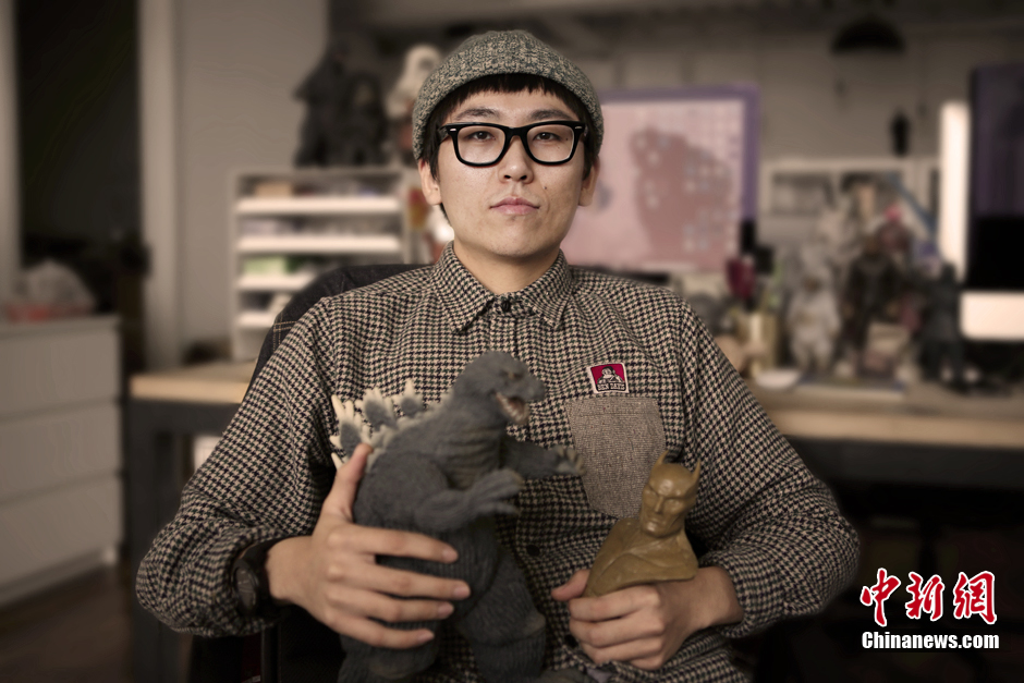 SOTO,传媒动画专业毕业,现从事造型类产品设计工作,喜欢模型制作,热衷亚文化和中古文化的他有两大挚爱:昭和特摄片和50年代环球怪物电影。Retro Boy通过雕刻传递着对生活、产品的热爱和工匠般的情怀。 中新网记者 翟璐 摄