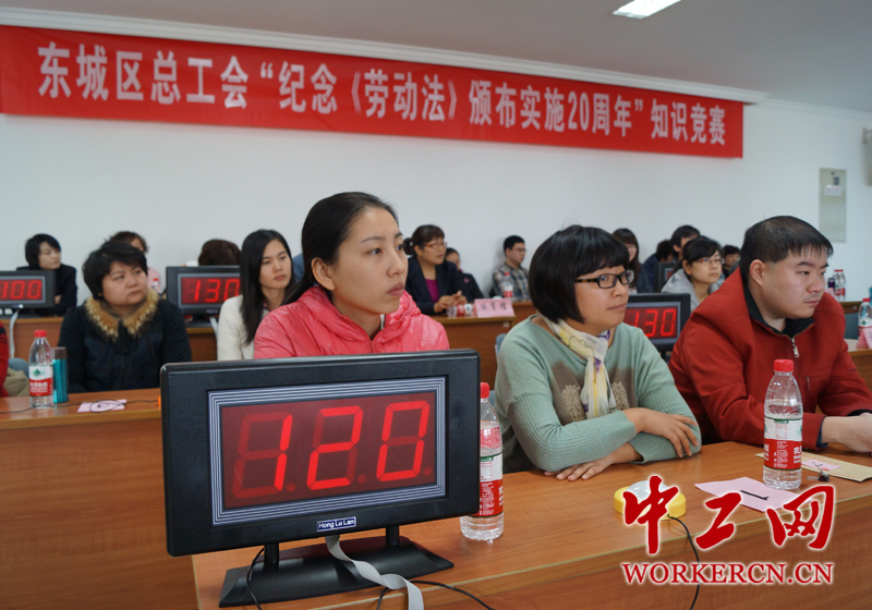 经过选拔,全区共有20支代表队、60名选手参加。参赛代表队通过必答、抢答、风险三个环节,全面展示了全区广大职工学习劳动法律法规的成果,竞赛取得圆满成功。(中工网杨灵 摄)