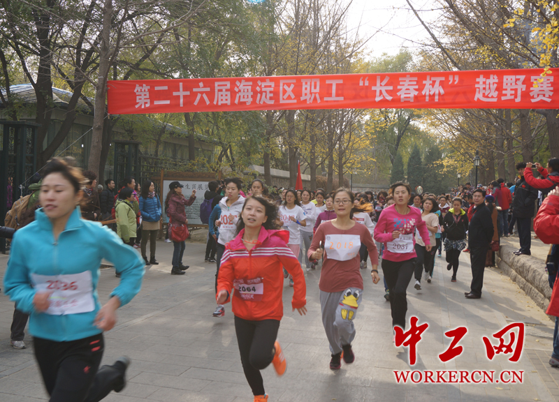 据了解,海淀区职工“长春杯”越野赛是基层职工体育活动的传统项目,已经连续举办了25届,是海淀区职工体育活动的品牌赛事。通过该活动,许多职工成为全民健身活动的热情参与者和积极推动者。 (中工网记者杨灵 摄)