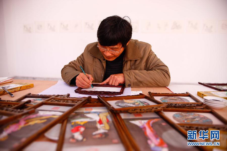 11月18日,在安徽省芜湖市无为县职业教育中心,朱晓钟在演示剔墨纱灯绘画步骤中的描稿。剔墨纱灯,又名“宫灯”,具有300余年历史,是安徽省芜湖市无为县的传统工艺品。清乾隆年间,手工艺者对传统“彩灯”工艺进行革新,选用丝质娟纱代替色纸和玻璃作画,独创了“剔墨”工艺,形成了剔墨纱灯。剔墨纱灯集木工、雕工、漆工和绘画艺术为一体,经过加工、成型、油漆、绘画等工艺制作而成。其中绘画部分就包括了帐纱、描稿、剔墨、上胶、描线、打底色、染色和整理几个步骤,每一步都要求均匀准确,工艺要求精细。作为古老灯艺的一种,剔墨纱灯被列为皖地八大特产之一,并于2006年入选安徽省级非物质文化遗产名录。在庆祝中华人民共和国成立10周年期间,无为纱灯参加了在北京举办的全国工艺品展览会,并作为安徽省名优特产悬挂在人民大会堂安徽厅。朱晓钟是无为剔墨纱灯如今唯一的传承人。1984年,无为县文化局开办了无为剔墨纱灯厂,期望恢复几近消失的民间工艺,朱晓钟正好成为其中一员,开始学习剔墨纱灯工艺。日前,为了继承这门传统技艺,无为县职业教育中心开办了“剔墨纱灯传承班”,朱晓钟担任任课教师,希望能够发掘热爱这门艺术的年轻人,让剔墨纱灯的“灯火”一直延续下去。新华社记者 朱唯希 摄