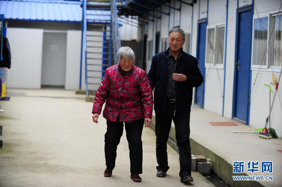 4年前,年近80岁的老母亲得了脑溢血,抢救过来后生活不能自理,还常常念叨在外奔波的儿子。两年前,王德奎的妻子退休,两人一商量,就把老母亲带到工地,住在工地的简易板房里。现在王德奎主持的中铁十一局成贵铁路中心试验室,已经是他两年来带着母亲辗转的第三个工地。王德奎说,母亲在哪里,哪里就是家。只有把老母亲带在身边,时时尽孝,自己心里才踏实。新华社记者郝同前摄
