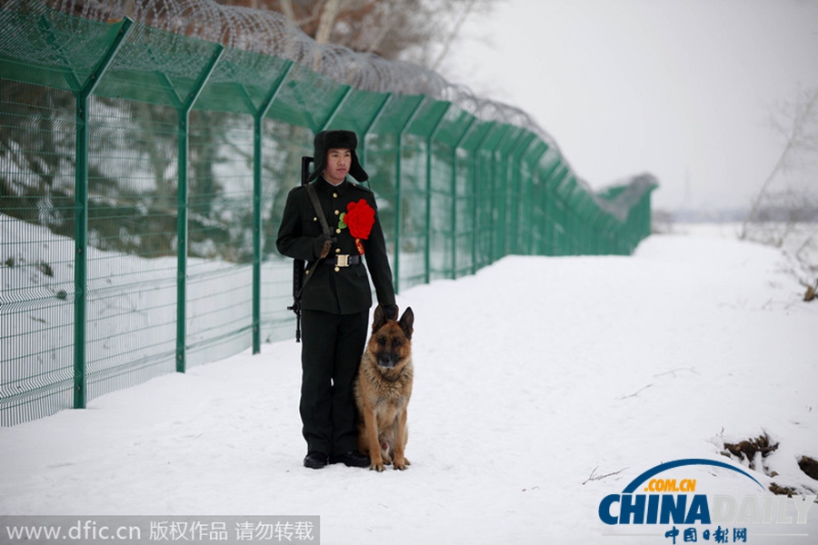 2014年11月29日,熊星在“好兄弟”军犬“小龙”的陪伴下,坚持站好军旅生涯最后一班岗。