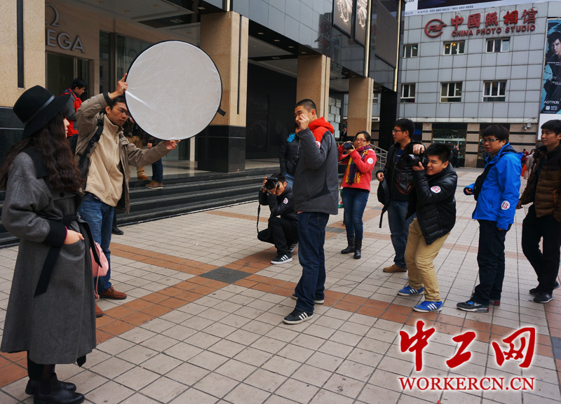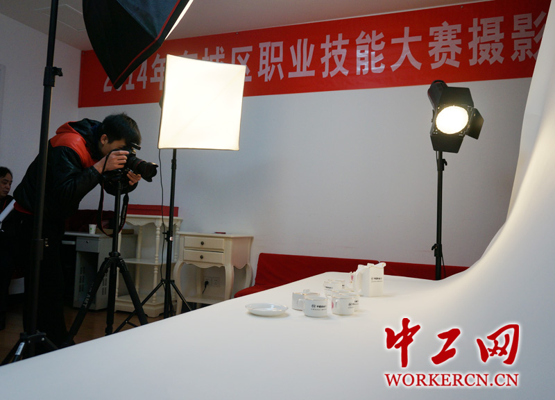 11月27日上午,2014年东城区职工职业技能竞赛摄影师工种实操技能决赛在中国照相馆开赛。来自中国照相、大北照相等单位的30多名摄影师通过室内灯光人像拍摄、室内灯光静物拍摄和室外自然光人像组照三个项目比拼实操技能,再结合之前的理论竞赛成绩,角逐最终名次。(中工网记者杨灵 摄)