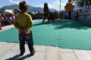 6、傣族特色表演让一个小孩子看得如痴如醉。摄影 刘英毅