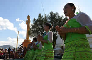 11、傣家姑娘唱起了具有民族特色的歌曲欢迎远方的客人。摄影 刘英毅