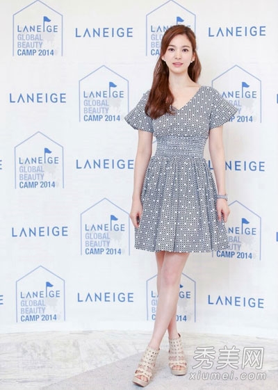 观察宋慧乔的造型可以发现,她很喜欢穿裙装,几乎都是连衣裙或者半裙的造型,而且裙子的长度也都在膝盖以上,这一点是显高的关键之一,还有一个关键的细节就是尽量选择高腰的裙装。
